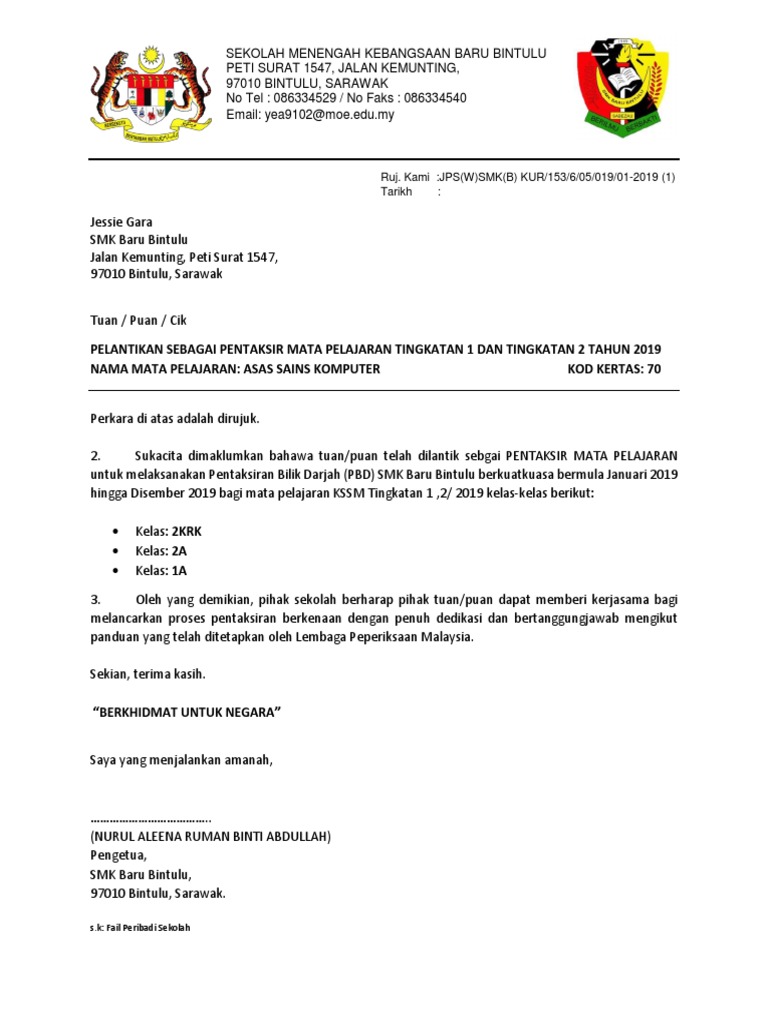 Contoh Surat Lantikan Wakil Pengutuisam