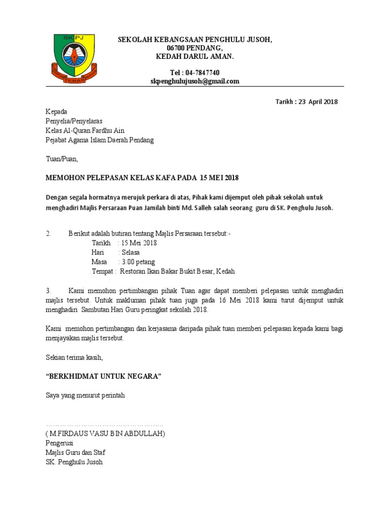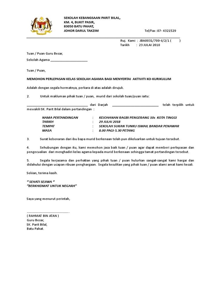 Surat Pelepasan Sekolah Agama Ragbi Pdf